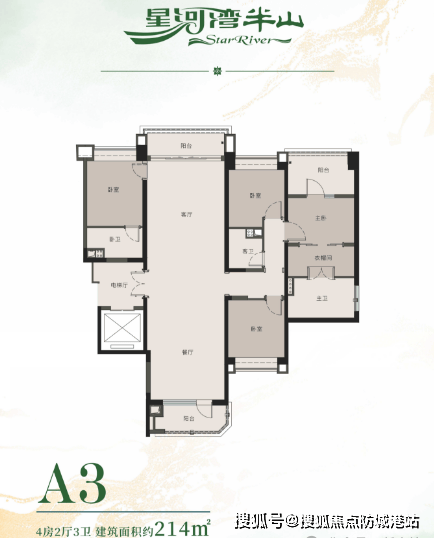 在房地产市场进入“现房时代”的背景下,星河湾半山坚持“所见即所得”的原则,推出了130-265㎡的实景现房系列。这一举措极大地消除了购房者的顾虑,让品质一目了然。从刚需友好型的三房到奢华阔绰的五房,每一款户型都经过精心设计,力求在空间利用率、采光通风、功能布局等方面达到极致,满足不同家庭结构的多样化需求。130㎡的三房户型,是专为年轻家庭量身打造的入门级优选。总价468万起的亲民价格,配合部分工抵房低至2.6万/㎡的单价,让上车变得轻松无压力。3.3米的层高让空间显得格外舒展,没有丝毫的压抑感。户型方正,动静分离,南向宽景阳台不仅能引入充足的阳光,还能眺望远处的山景,让居住者在繁忙的工作之余也能享受到片刻的宁静。无论是新婚夫妇还是三口之家,这个户型都能提供温馨舒适的居住体验。
